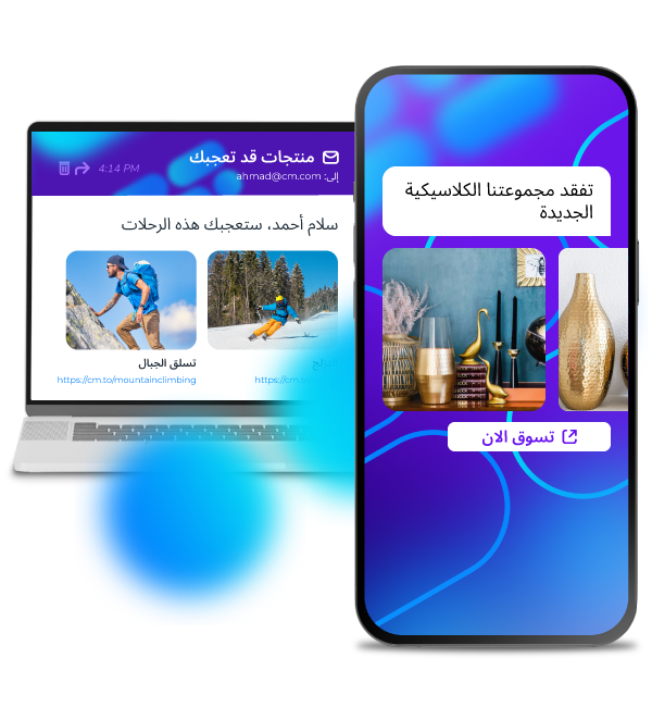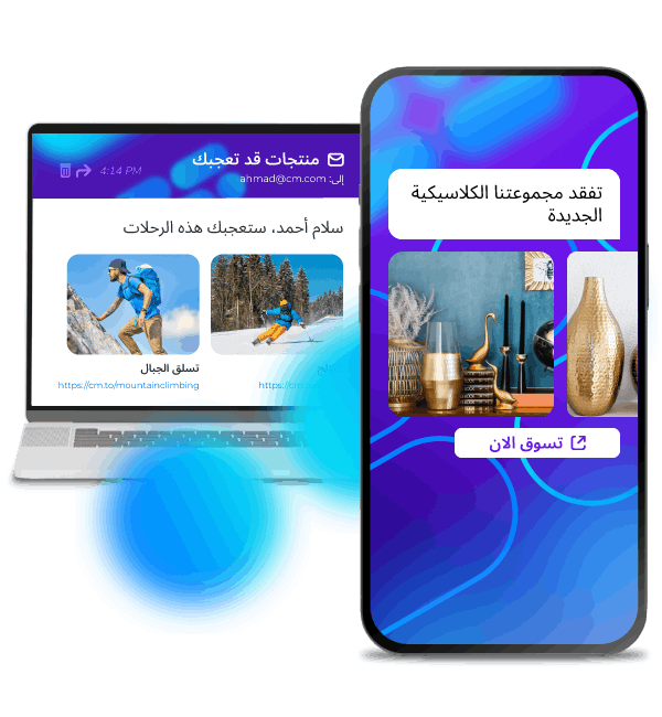 ثبّت ولاء العملاء وحافظ عليهم من خلال تخصيص التجربة عبر الانترنت. تمكنك منصة الحملات التسويقية من تخصيص الصفحات على الموقع الالكتروني والاشعارات عبر التطبيقات الهاتفية.