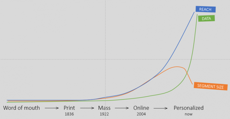 The reach of marketing channels has been expanding over time; starting with newspaper ads and local radio reaching a region to new ad networks such as Facebook and Google reaching half the globe. And not only the reach is expanding, the insights into the audience, as measured in actual data about the individuals, is growing. Using this information, you can create very specific segmentations that will allow marketers to target those profiles that are highly relevant and receptive to your information.