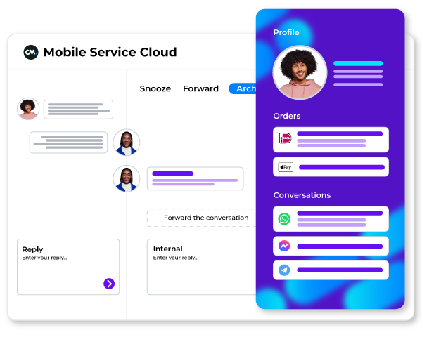The agent refers to Mobile Service Cloud and sees it’s not the first time this customer has called disappointed. But it's also not the first product purchased from the company.