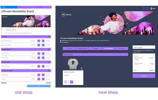 Wie funktioniert das nun genau? Auch für dieses Update finden Sie eine einfache Erklärung auf der FAQ-Seite, um Ihnen den Einstieg zu erleichtern. Sehen Sie unten ein Beispiel für das Update im Vergleich zum alten Ticketshop.