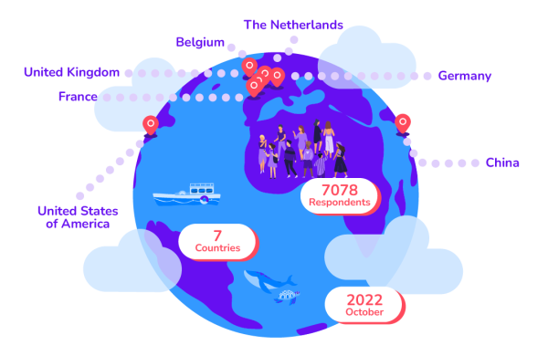 To represent different regions of the world, we surveyed 1000 respondents in each of seven countries, including the United States of America, France, the United Kingdom, Belgium, The Netherlands, Germany, and China.