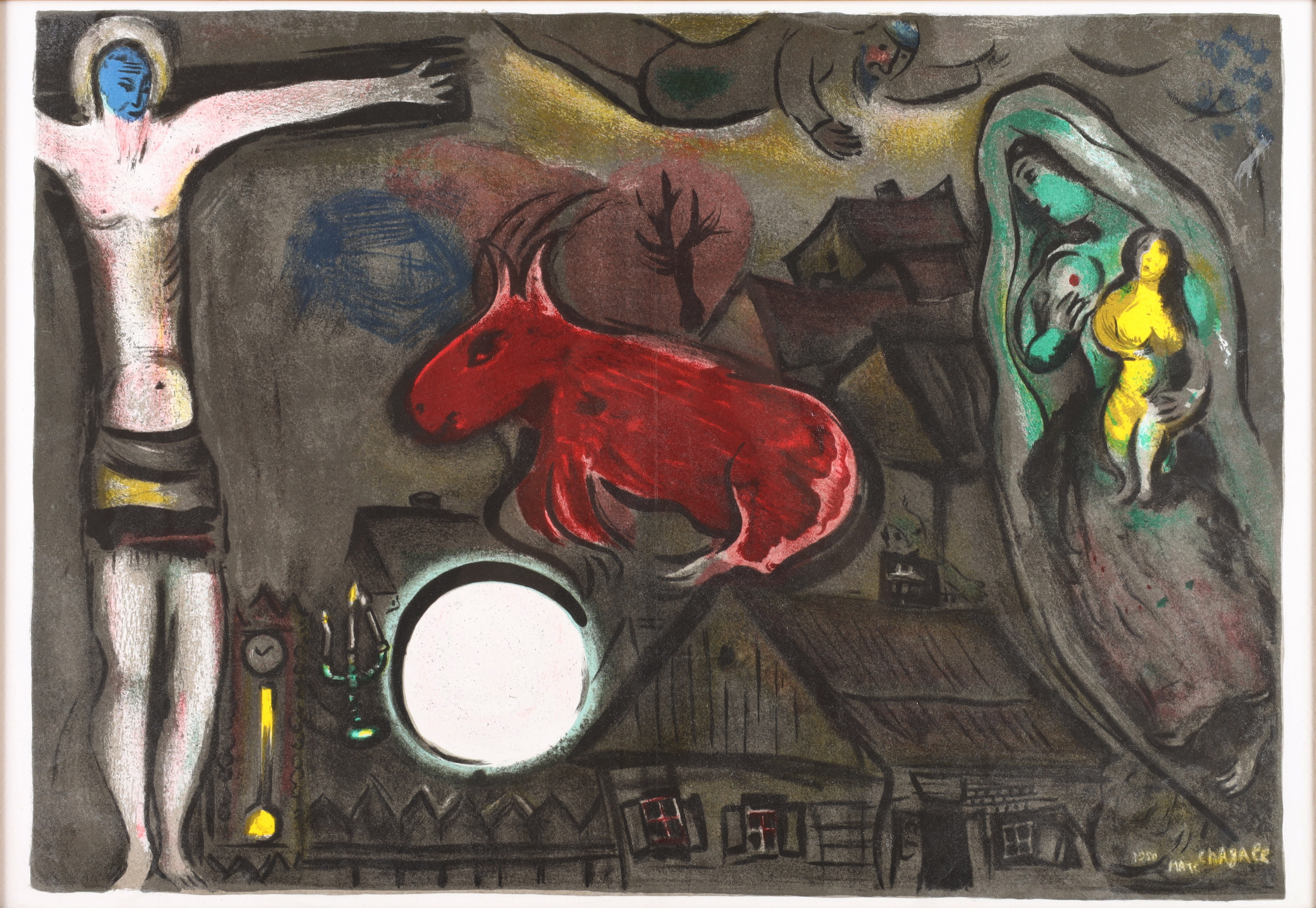 Chagall doneerde het werk voor de verkoop ten bate van Terre des Hommes, een internationale charitatieve instelling die opkomt voor de rechten van het kind. Er werden 2000 drukken vervaardigd en nog eens 100 drukken op Arches papier, die door Chagall genummerd en gesigneerd werden. Het opschrift ‘au secours de l’enfance meurtrie’ kan vertaald worden als ‘te hulp van een gewonde jeugd’. |