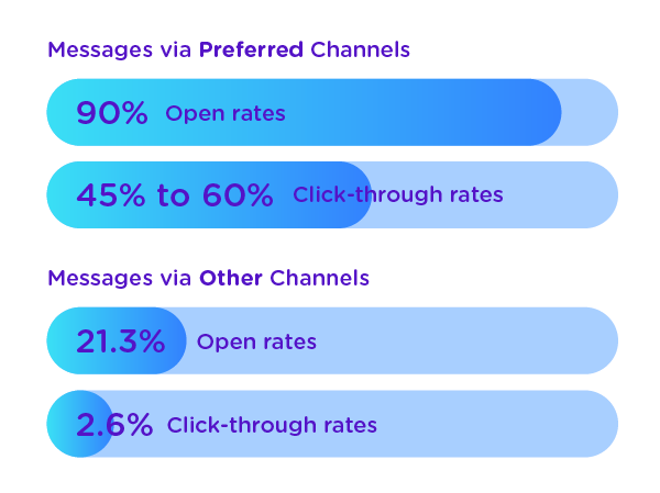 Recognise that every consumer has their preferred communication channel, whether it's WhatsApp, email, Instagram or others. Acknowledging and catering to these preferences can significantly impact your success. According to Harvard Business Review, messages sent via preferred channels have open rates of 90%, a substantial increase compared to the general 21.3%. Additionally, Click-Through Rates (CTR) range from 45% to 60%, compared to the average of 2.6%. To maximise the impact of hyper-personalisation, it should be present throughout the entire customer journey. Whether it's the first interaction or a follow-up, personalisation should be a continuous effort.