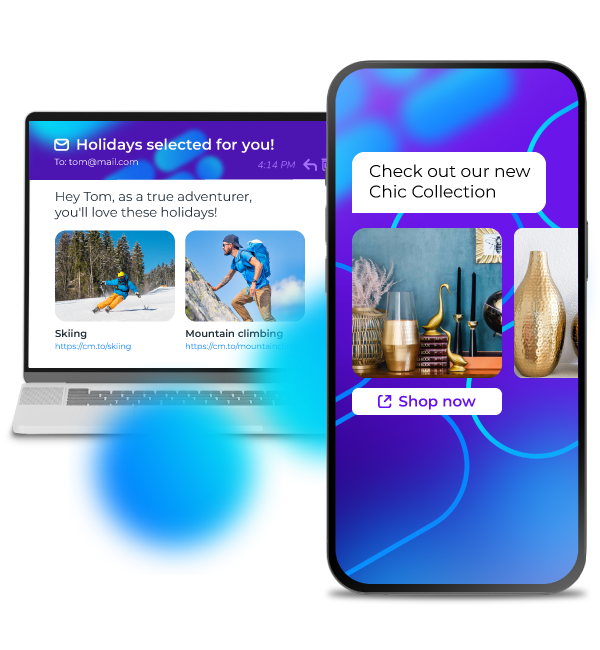 Easily build on-brand campaigns with AI-suggested content, visual editors and real-time customer data.