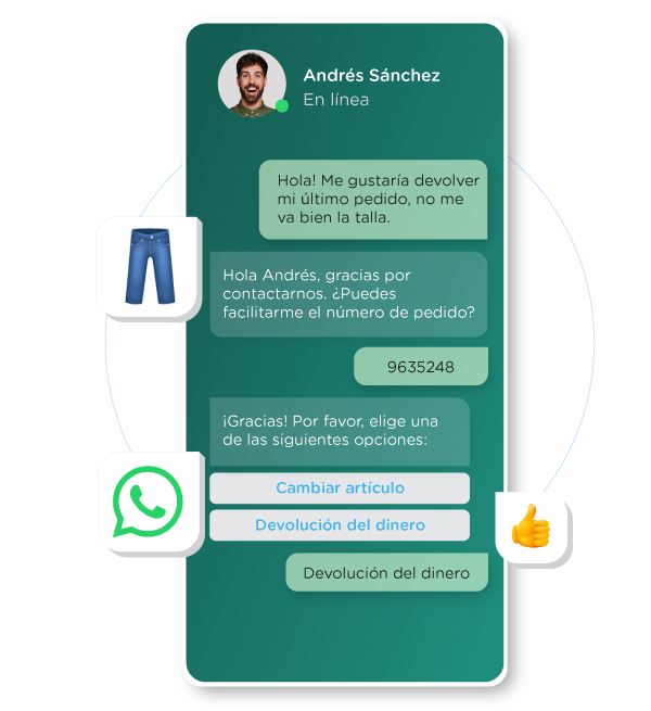 Los procesos de los clientes, como reembolsos o reemplazos de productos, o completar formularios extensos, pueden ser delicados y potencialmente frustrantes tanto para los clientes como para las empresas. Al implementar un Chatbot de WhatsApp, puedes automatizar las respuestas a preguntas frecuentes sobre reembolsos, reemplazos y formularios, garantizando una experiencia rápida, eficiente y sin complicaciones para ti y tus valiosos clientes.