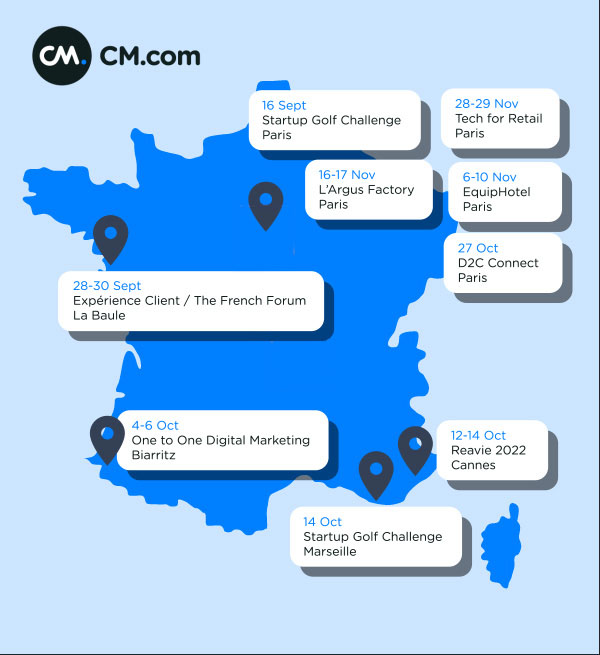 “Avec désormais deux établissements en France, à Paris et à Marseille, une vingtaine de collaborateurs et une centaine de clients, CM.com est devenu un acteur incontournable de l’expérience client en France. Nous sommes ravis de pouvoir rencontrer notre écosystème à la Baule, Biarritz, Marseille, Cannes ou Paris, et de présenter l’ensemble de nos solutions conversationnelles qui révolutionnent l’expérience client” explique Pierre Garrigues, Country Manager en France de CM.com