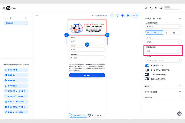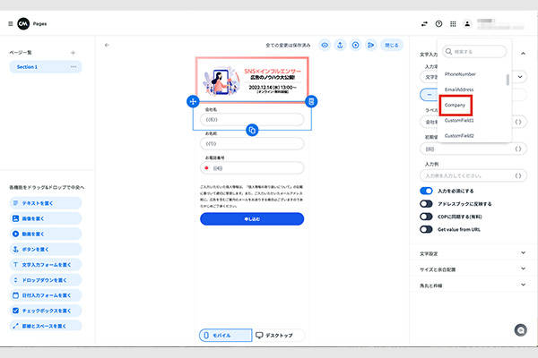今回はBtoB向けのセミナーなので、このように会社名、名前、お電話番号の3つの項目を入れ込みました。