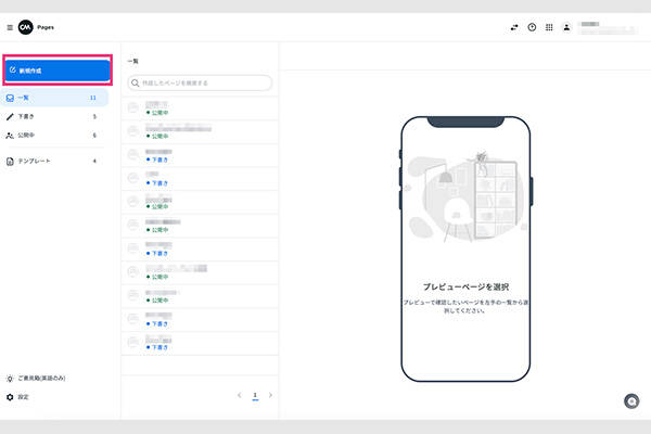 文面ができたら、次はCTAボタンにリンクさせる予約フォームを作成していきます。メニューから、「簡単LP広告作成ツール」>「新規作成」を選択します。