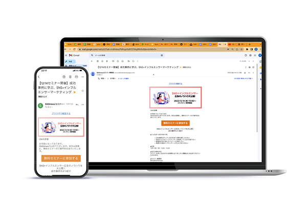 今回は、例として、SNSの運用代行サービスを行なっている企業の、無料セミナー告知メールを作成していきます。
