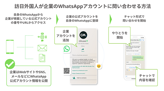CM.comはWhatsAppビジネスの公式パートナーでWhatsAppビジネスを便利に利用できるサービスを提供しています。