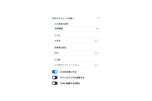 これは受信者のアクションを最小限に抑えて離脱を防ぐための大事なポイントです。まず「お名前」の部分を選択し、右側の詳細設定でこのように入力します。