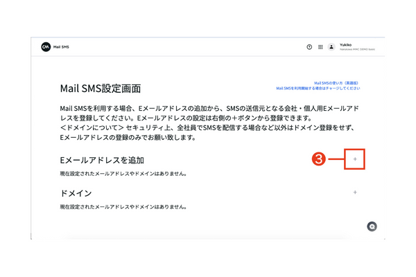 「Eメールアドレスを追加」の右側にある3.の「+」マークをクリックします。クリックすると、以下のような画面が表示されます。