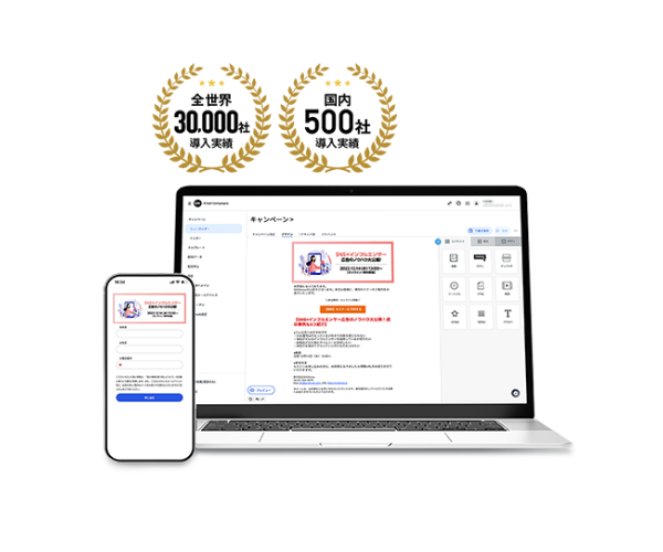 専門知識不要!ドラッグアンドドロップエディターを使いながら、だれでも簡単にHTMLメールとテキストメールの作成できます。さらにお気に入りのレイアウトはテンプレートとして保存もでき、使い回す事も可能です。モバイルフレンドリーに対応のマーケティングキャンペーンや大量のメール配信、開封率や反響率の高いメールマガジンを配信実現できるメール配信サービスです。