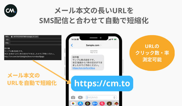 CM.com Japan株式会社(本社:渋谷区恵比寿、代表:Jeroen van Glabbeek)が提供するあらゆるメールソフトからSMS送信ができるMailSMSサービスにクリック確認ができる短縮URL機能が追加されたことをお知らせいたします。この機能により、MailSMSでSMS本文に表示したいURLをメール本文に挿入するだけで、クリック確認ができる短縮URLに変更されSMSに表示できます。効率的なメッセージ配信を実現をサポートします。