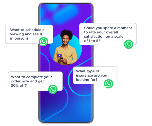 取得した顧客データを使って顧客のWhatsAppに写真、動画、位置情報、URLなどを組み合わせて、お得なクーポンやキャンペーン、予約連絡、お知らせなどを送信できます。