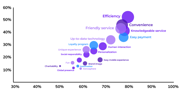Bijna 80% van de ondervraagden zegt dat snelheid, gemak, kundige en vriendelijke service (en betaalgemak) de belangrijkste elementen zijn van een positieve klantervaring.