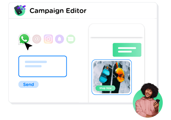 Is je WhatsApp message template goedgekeurd? Hebben je contacten zich aangemeld om WhatsApp-berichten te ontvangen? Dan ben je klaar om van start te gaan! Onze Campaigns app, onderdeel van Mobile Marketing Cloud, is een eenvoudige interface om niet alleen WhatsApp, maar ook SMS, Instagram en RCS-berichten te sturen.