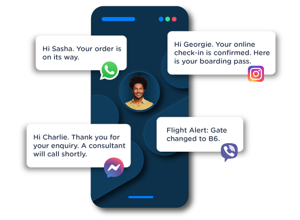 Je kunt makkelijk via meerdere platformen een bericht sturen naar honderden, of zelfs duizenden abonnees. Dit doe je door een zakelijke berichten-API aan je communicatiekanalen toe te voegen. Je kunt bijvoorbeeld SMS-berichten voor orderbevestigingen, leveringen en afspraakherinneringen automatiseren. Zo ontvangen je klanten alle belangrijke informatie precies wanneer ze dat nodig hebben.
