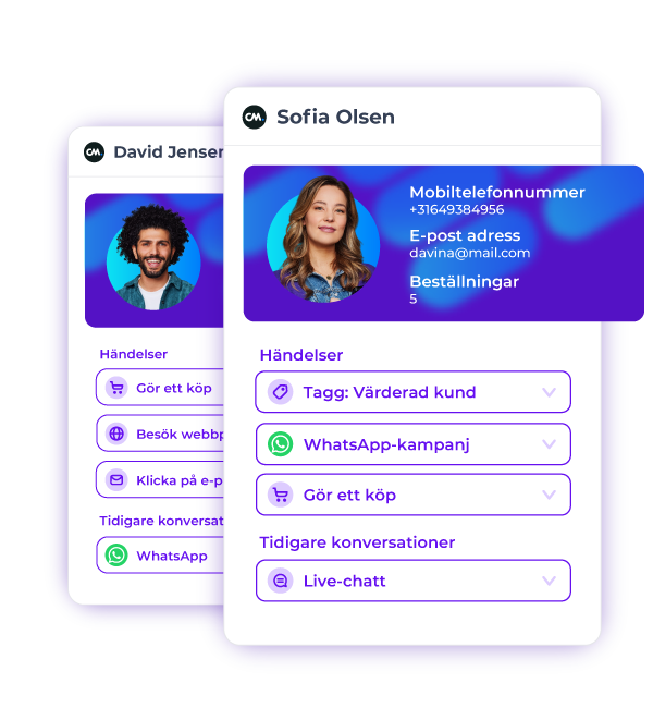 Vår Engagement Platform kopplar samman kunddata med våra chatbottar för att säkerställa personliga konversationer, och omvänt hämtar vi data från chatbottar till Customer Data Platform.