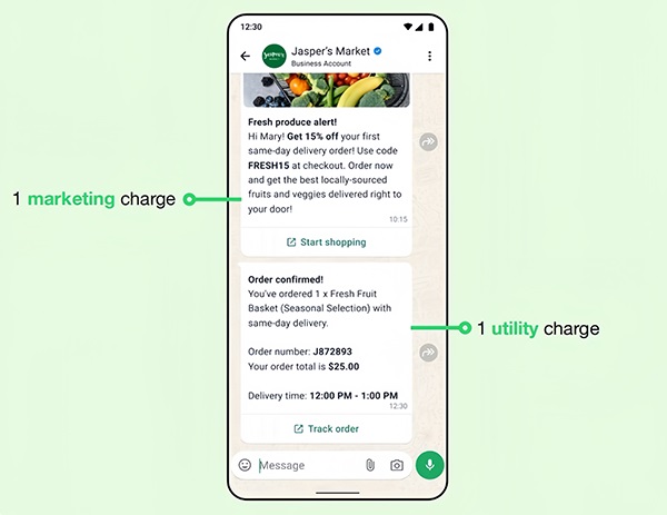 从2025年7月1日起,WhatsApp Business平台将全面采用按消息计费模式,取代现有的按会话计费模式。这意味着将根据企业发送的每条消息进行计费,而不是按每次24小时的会话收费。具体计费范围包括: