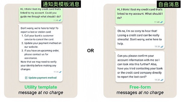 通知类模板消息(Utility):在24小时客户服务窗口之外送达的通知类模板消息将按条计费。