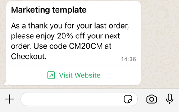 我们都知道向用户发送消息的前提是用户需要订阅企业的WhatsApp企业消息,企业可以在发送营销类模板消息时,为用户提供额外的订阅与退订选择,选择订阅的用户会有接到此类信息的提前心理预期,可以减少用户的负面反馈和流失。