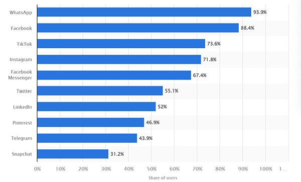 (南非社媒渠道渗透度-Statista 2023年数据)